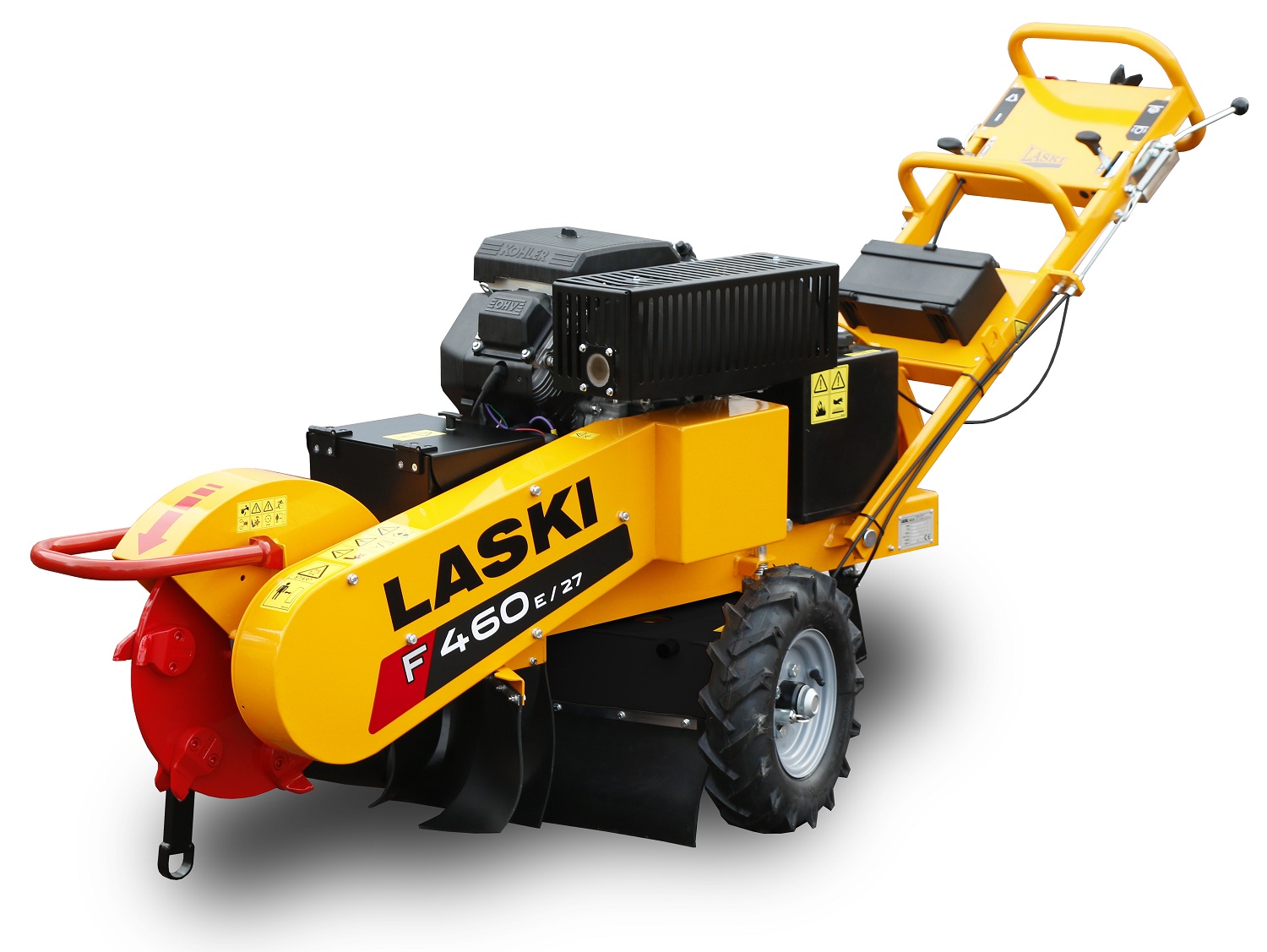 Our stump cutter LASKI F460 is based on our field-proven model LASKI F450. This machine is designed for cutting of above- and under-ground stump parts by cutting in a swinging way. Max. stump diameter to be cut is in fact unlimited (recommended up to 800 mm). Due to its swivel base this machine newly facilitates swinging motions of the head also horizontally.Automatic locks of the upper turnable part on the chassis and easy machine attendance facilitate any handling at work. Overall width of 780 mm makes also limited spaces and narrow sites more accessible.
