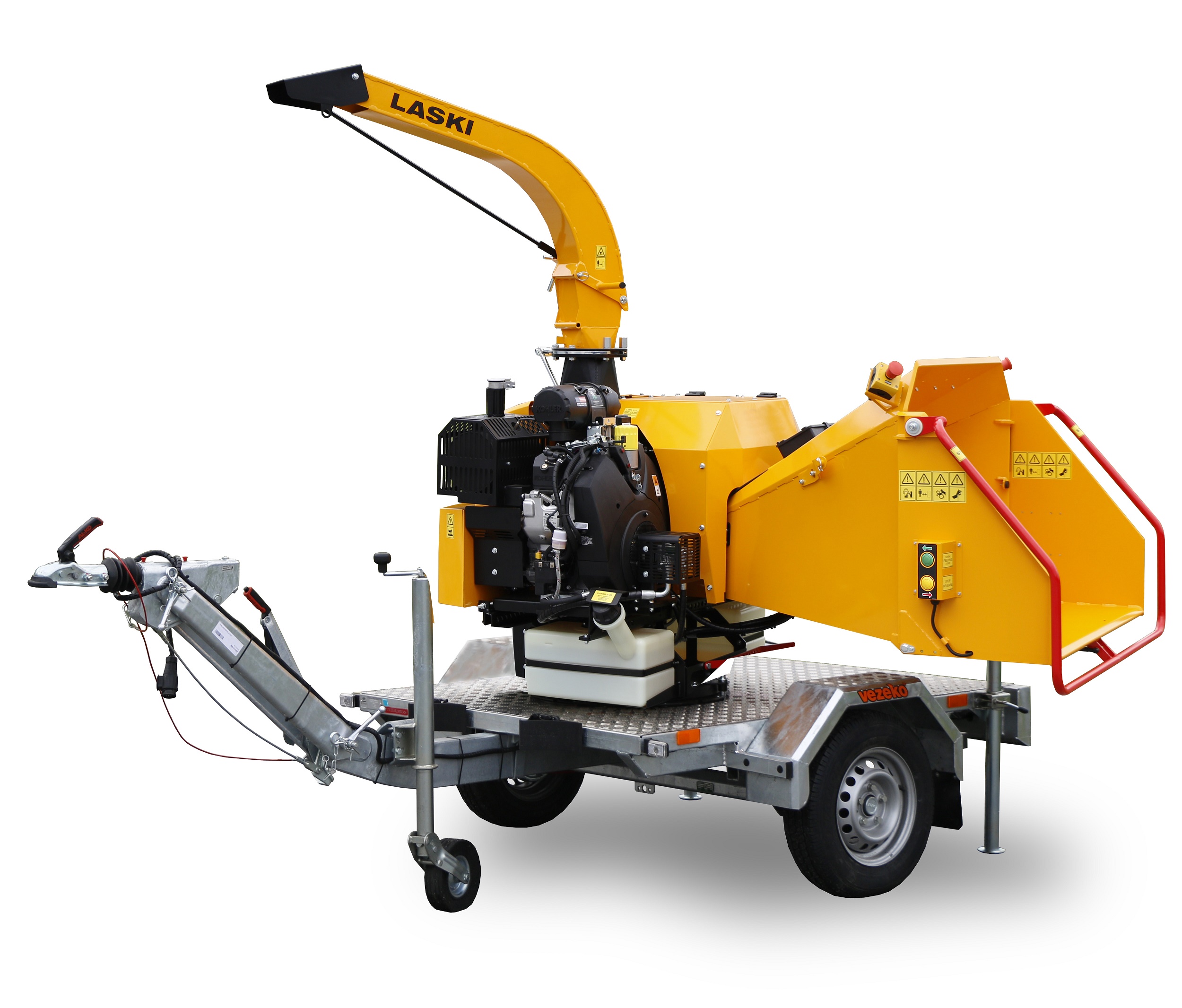 This chipper assembly, completed also with an overrun brake, can be coupled to towing vehicles (even passenger cars). For such a road train up to 3,5 t the driver should keep a driving licence at least of the group B.